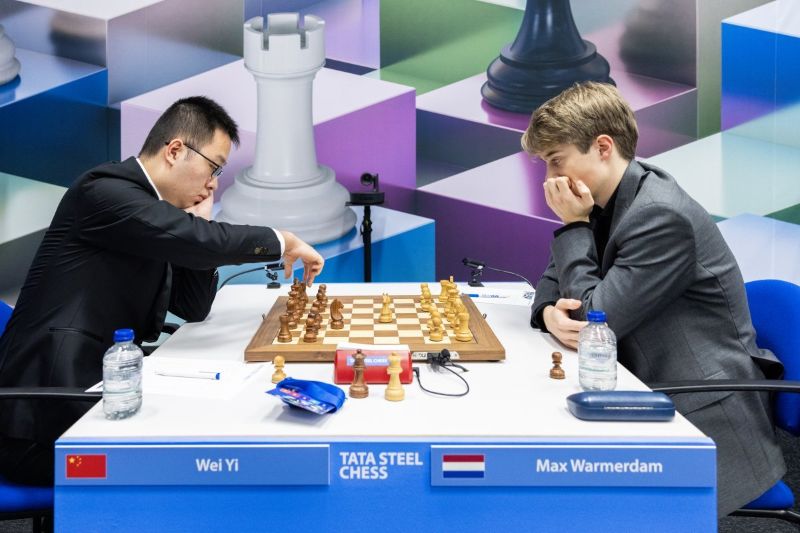 L’autre vainqueur du jour est le chinois Wei Yi. Dans une Partie écossaise, il a profité des grosses imprécisions du jeune hollandais, Max Warmerdam, dans une finale avec une qualité en sa faveur. La partie débouche dans une finale avec Cavalier + Fou + 2 pions pour les Blancs contre 2 Tours pour les Noirs. Wei Yi, fort de ses 2 Tours, remporte sa première partie du tournoi.